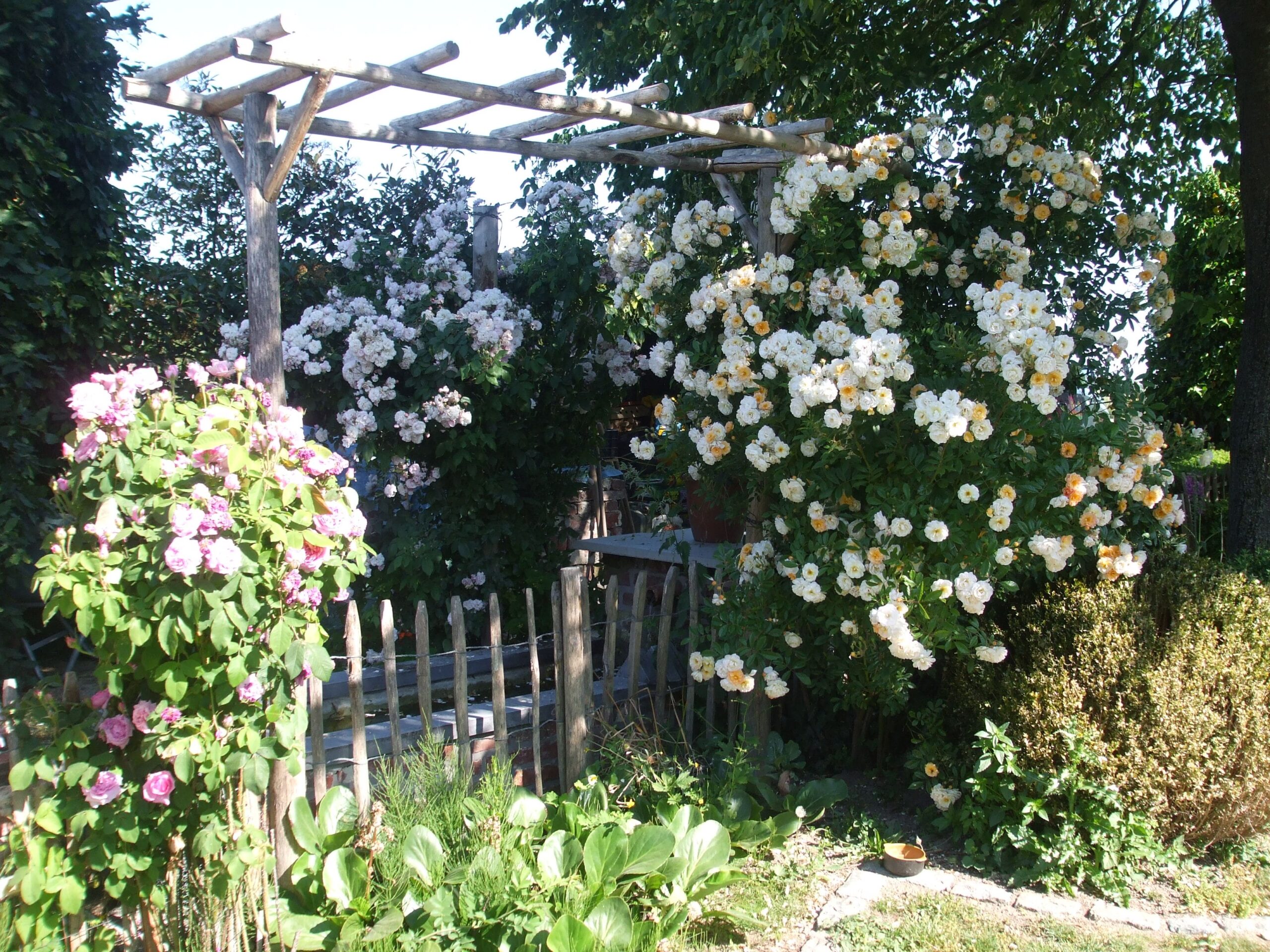 rosier rouge palissé mur