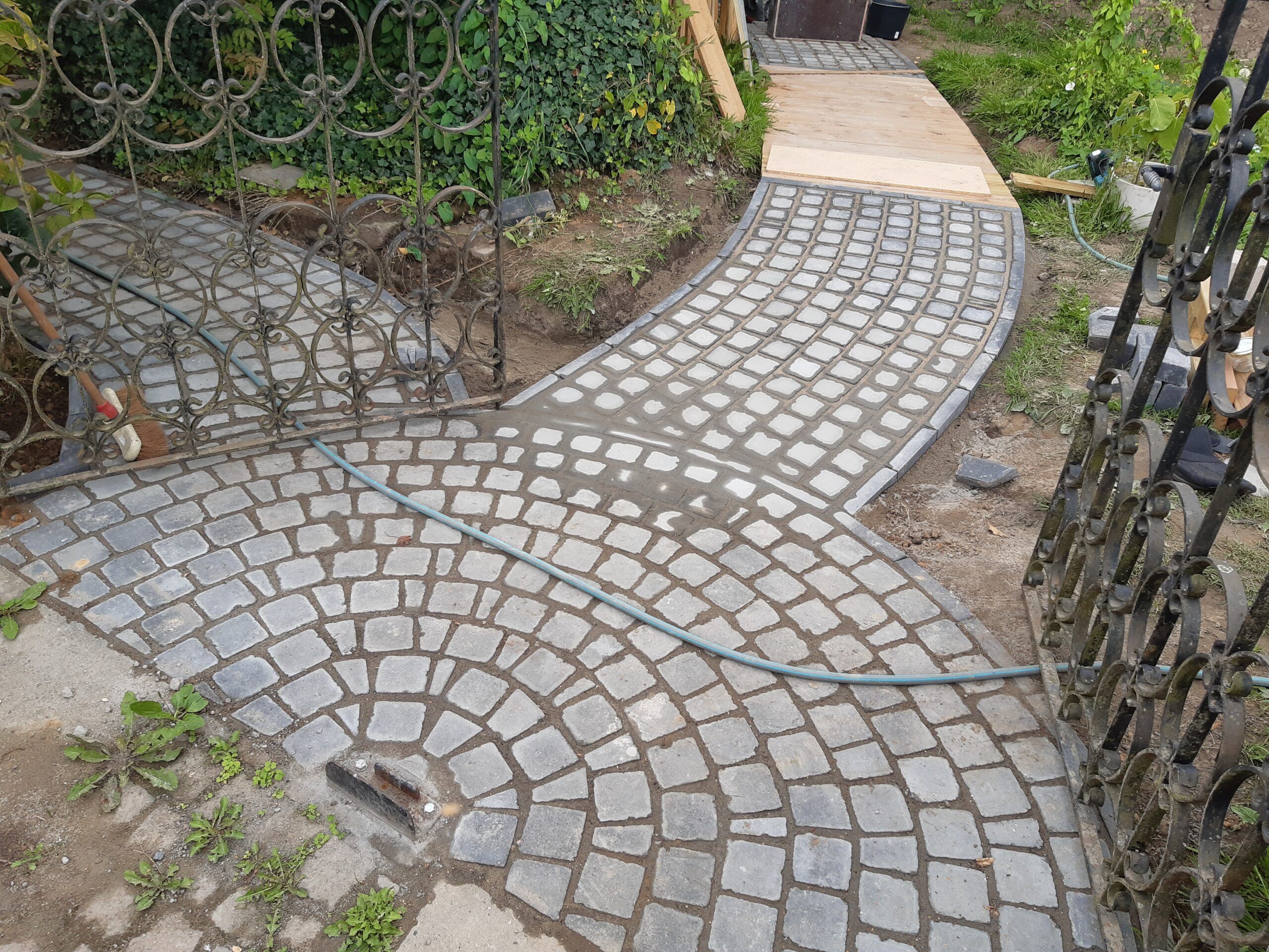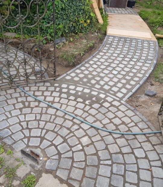 Parking pavé avec chemin accès
