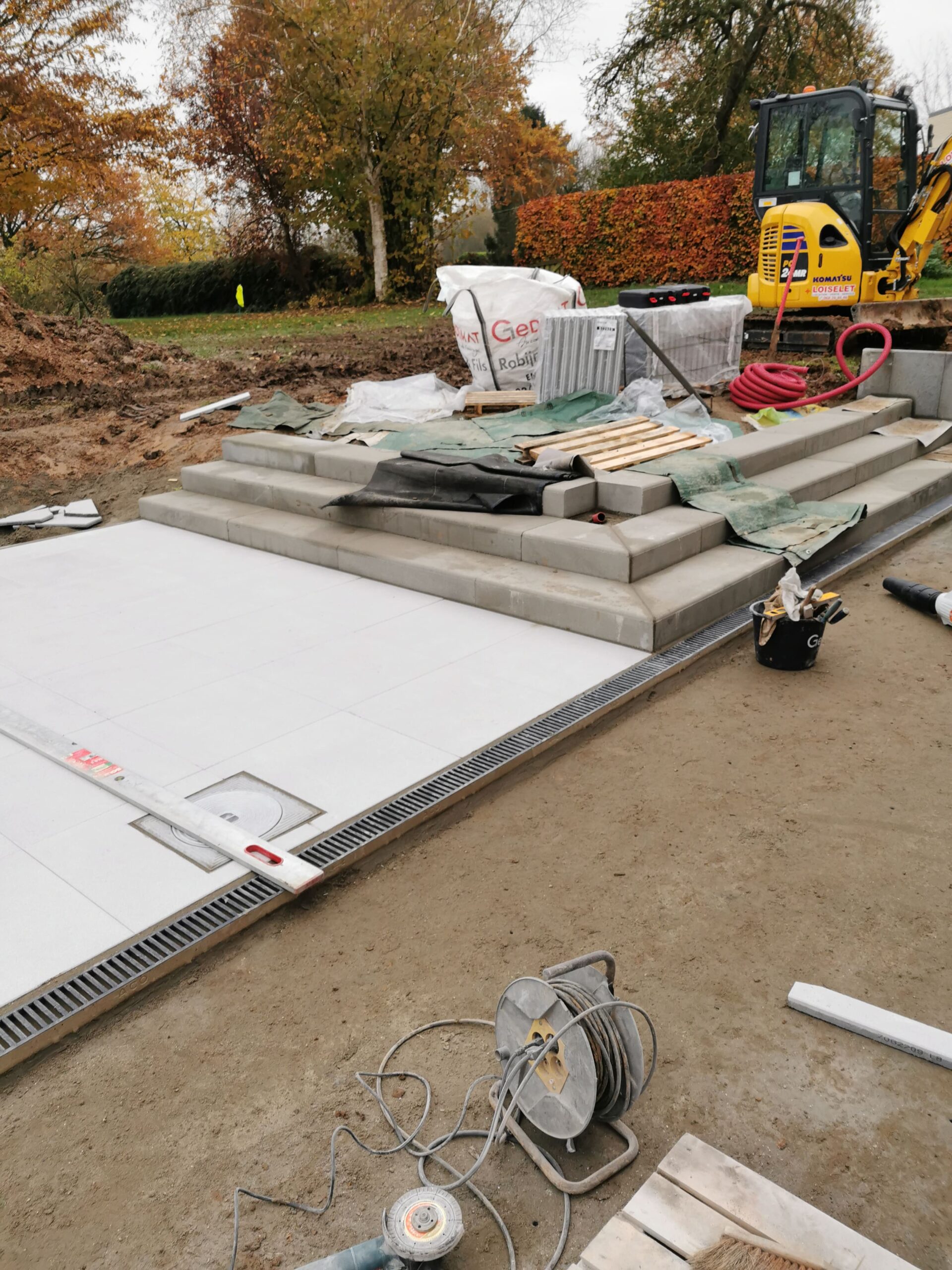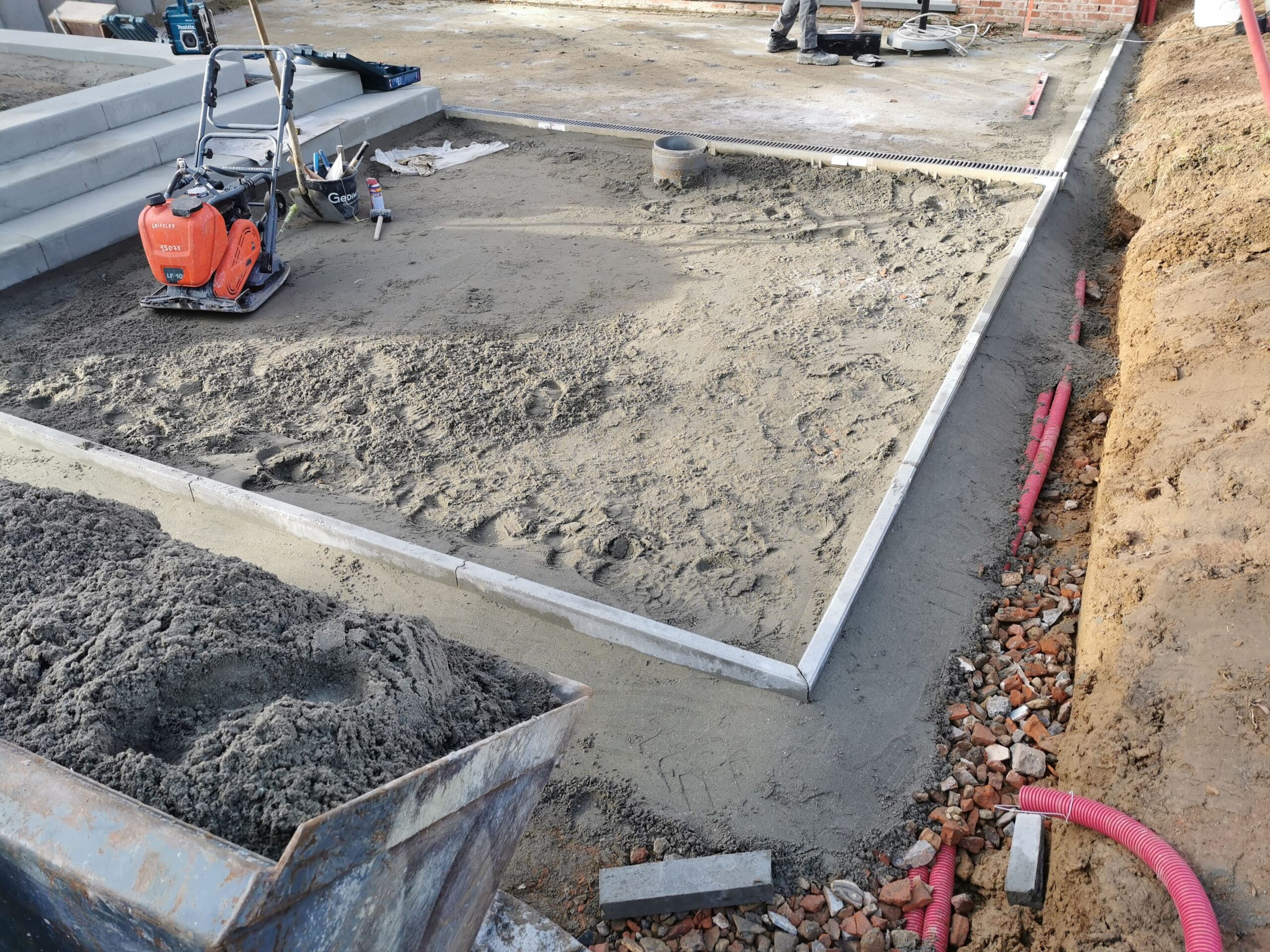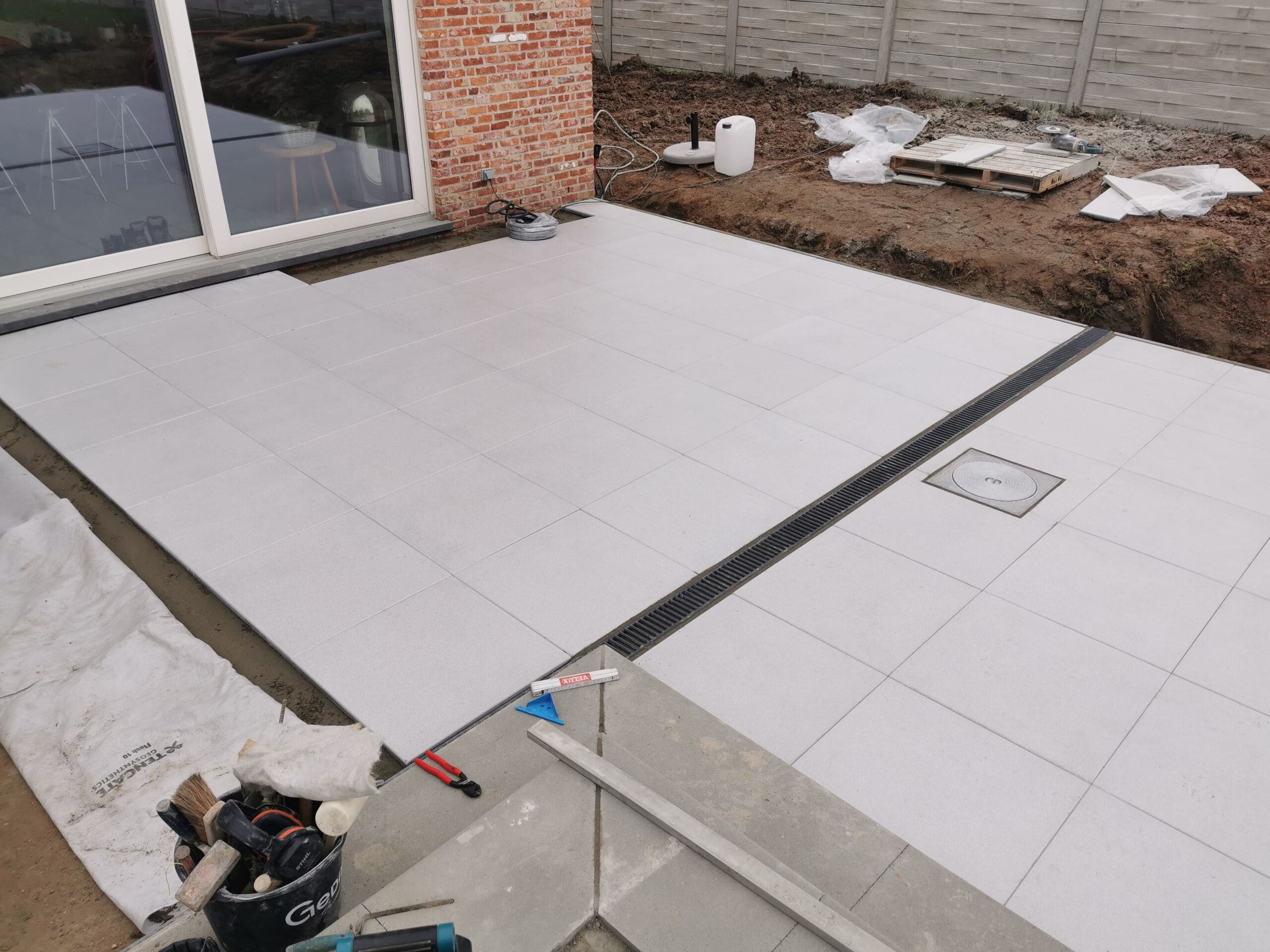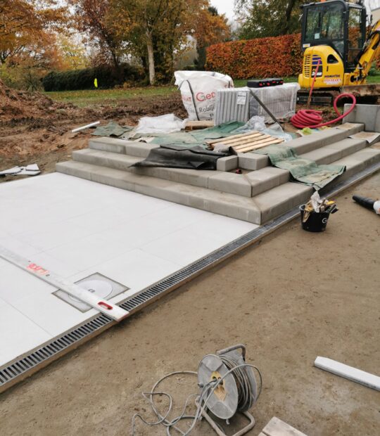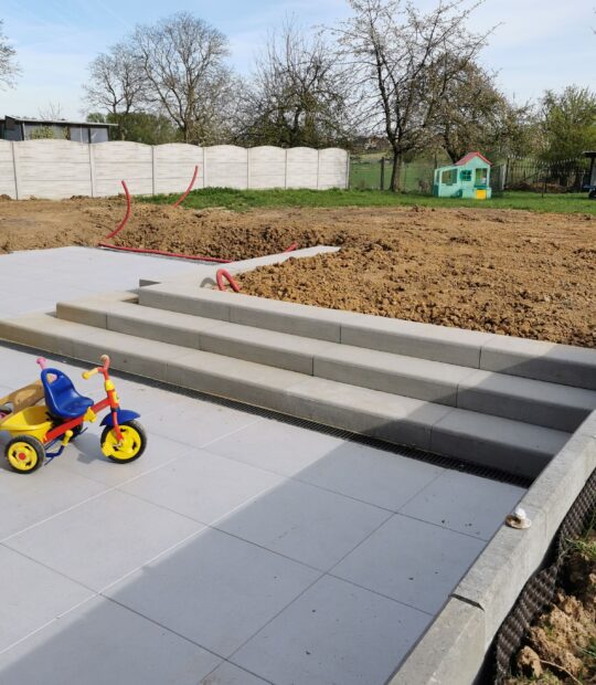 Terrasse + escalier + trottoir + parking