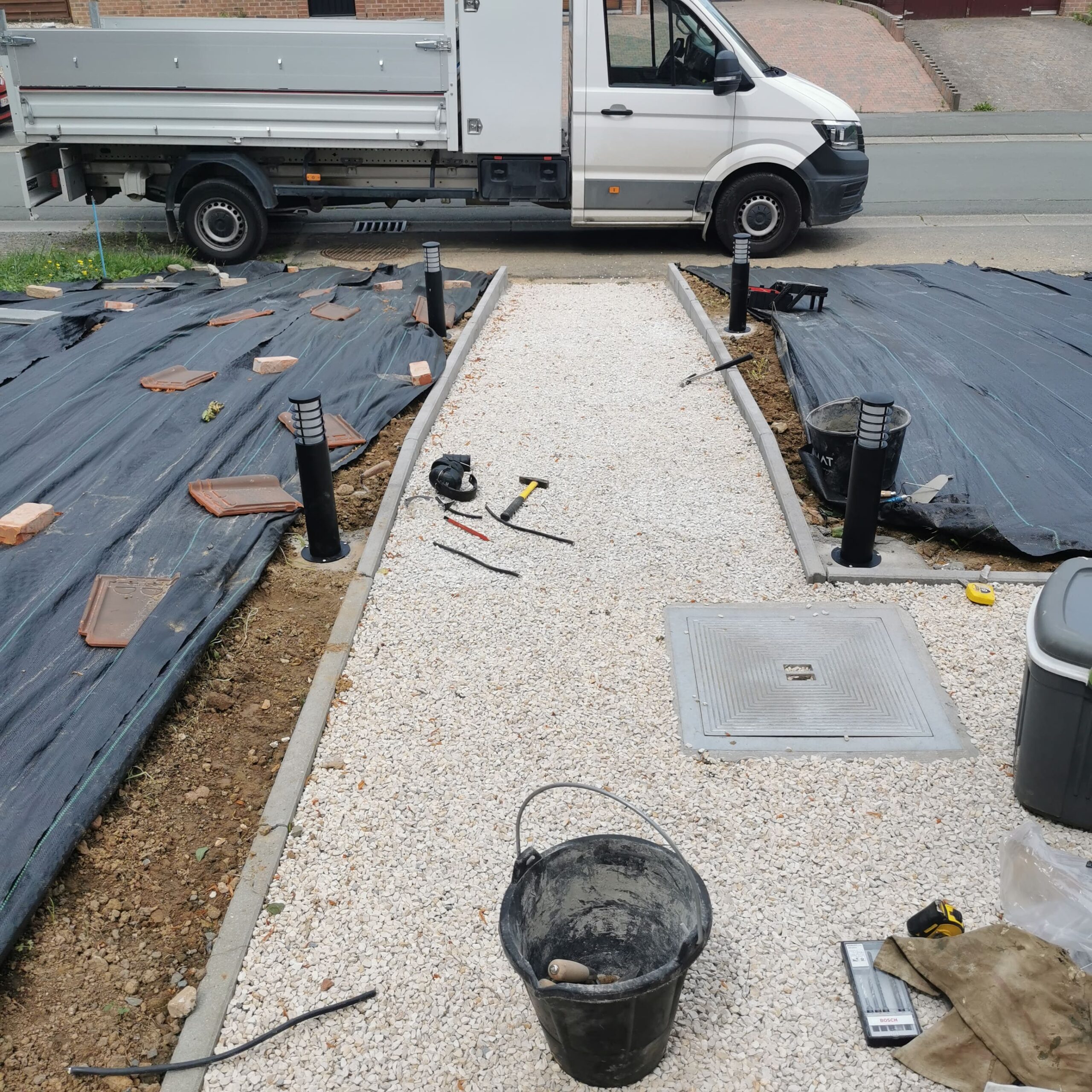 Parking pavé et chemin d’accès